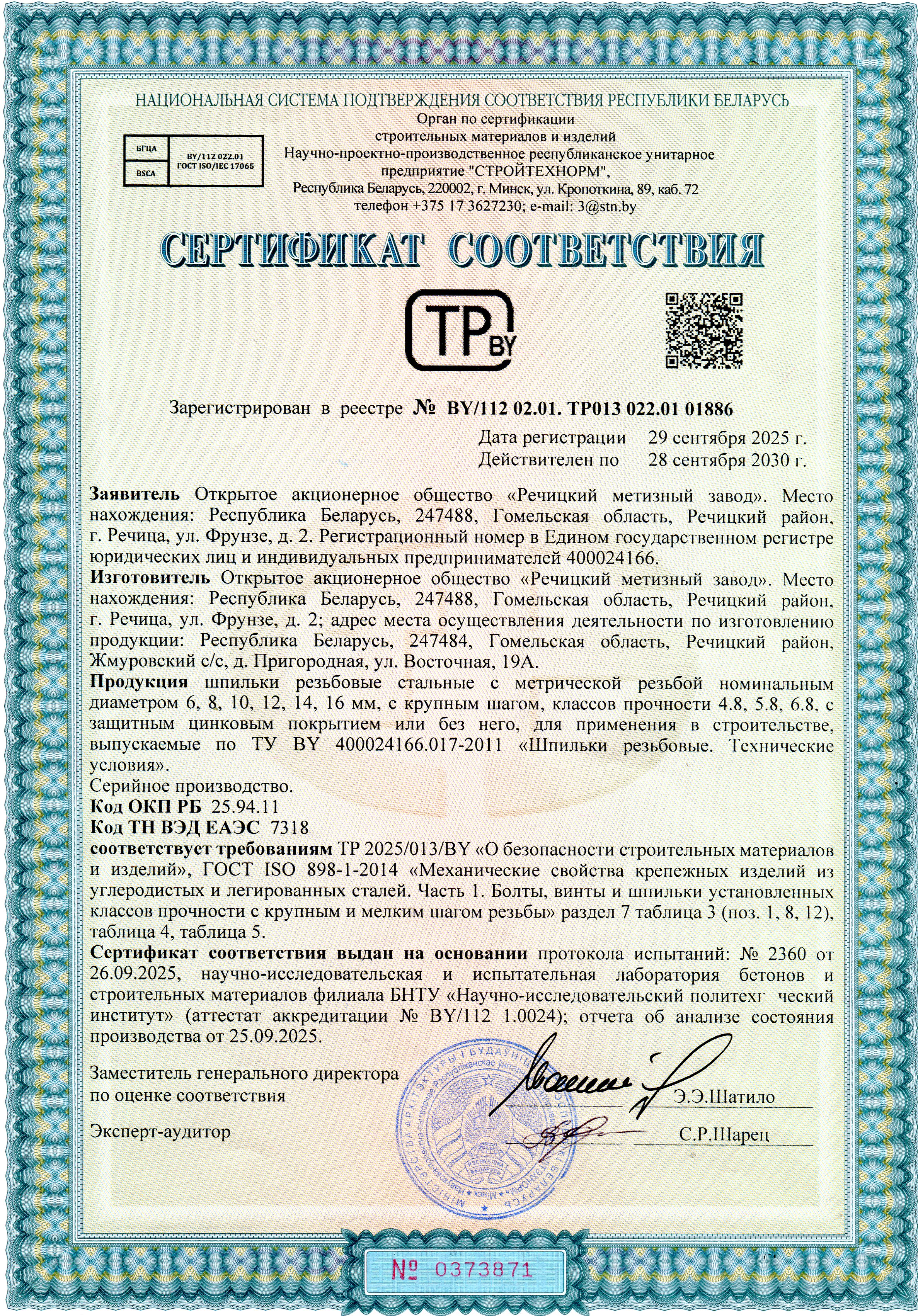 • Шпилька изготовлена из стали, что обеспечивает высокую степень надежности и устойчивости к механическим нагрузкам.